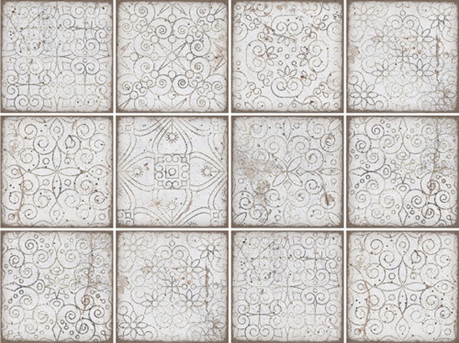 Scarlet, das eine moderne Identität hat, die sich von klassischen Fliesenfiguren unterscheidet, bietet einen rustikalen Stil mit seinen originellen Mustern. Scarlet mit den Maßen 19,7x19,7 und 9,7x9,7 wird von Dekoren in den gleichen Maßen begleitet.